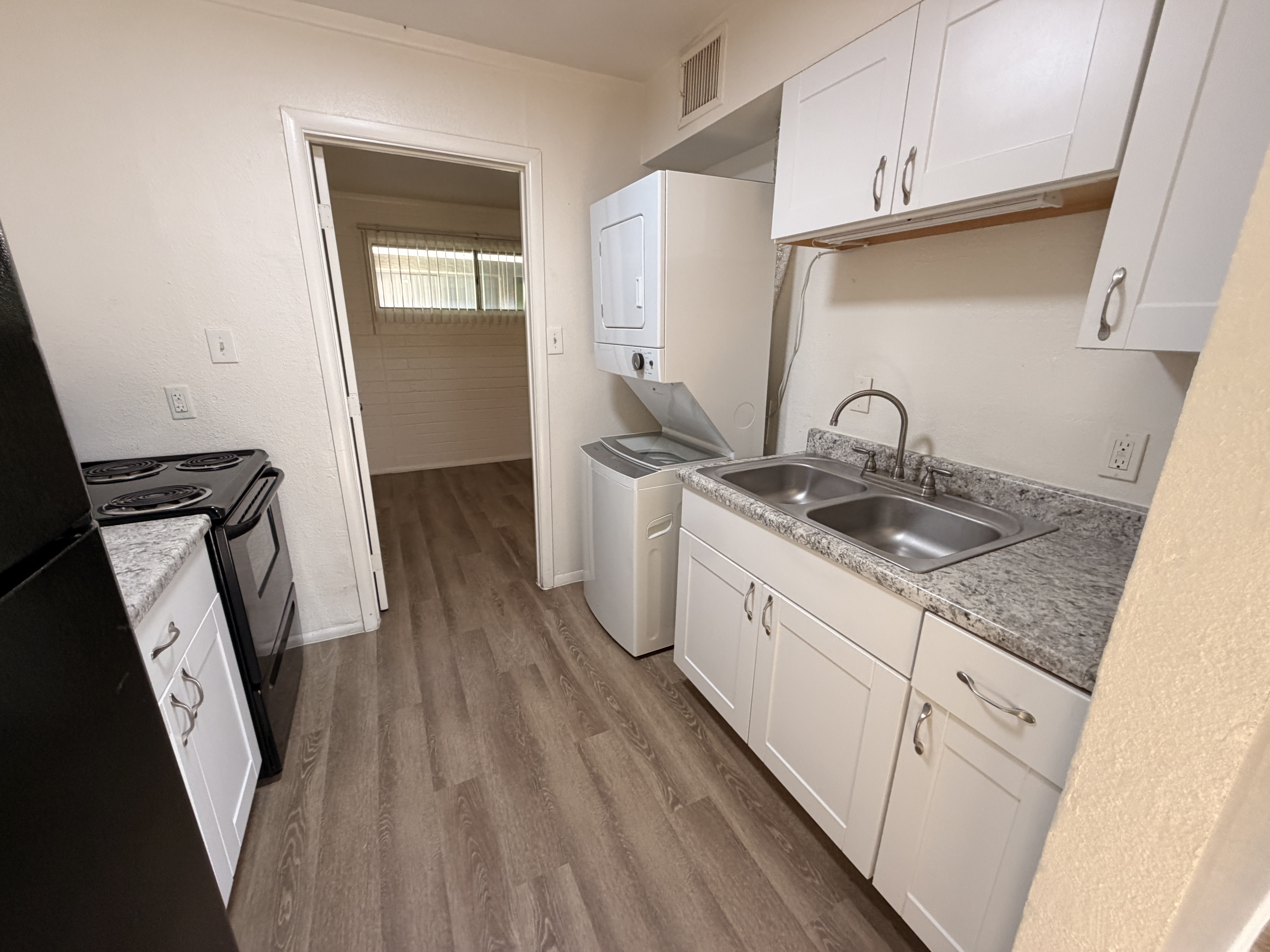 Cozy 1Bdm 1Ba Glendale Apartment This one-bedroom, one-bath apartment is located in the Glenn Isle community and offers a functional, open layout. The unit comes with black kitchen appliances and includes an in-unit washer and dryer for added convenience. The living room opens directly into the eat-in kitchen, creating a practical living space with good natural light. Fresh paint and wood plank flooring run throughout the unit for a clean, updated look. The bedroom includes a large side-by-side closet and provides access to the bathroom, which features a tub/shower combination. The bedroom also has a rear entry door for additional access. Glenn Isle is centrally located near shopping centers, major thoroughfares, and downtown Glendale. Community amenities include a BBQ and picnic area as well as a shared laundry center. Two small spayed/neutered pets are permitted with a $300 pet deposit and $35 monthly pet rent. We do not list on CRAIGSLIST OR FACEBOOK MARKET PLACE SO IF YOU SEE IT ON THERE IT IS A SCAM. $50.00 non-refundable application fee per adult, age 18 or over. Monthly Admin fee includes pest control and common area maintenance. Base rent does not include monthly $50 W/S/T reimbursement. Full security deposit of $695.00 due upon approval. Move in date must be between 7 & 30 days from lease signing/payment of security deposit. If moving in on or after the 5th then pro-rated current month rent is due as well as the following full month. All rent is due 7 days prior to move in.