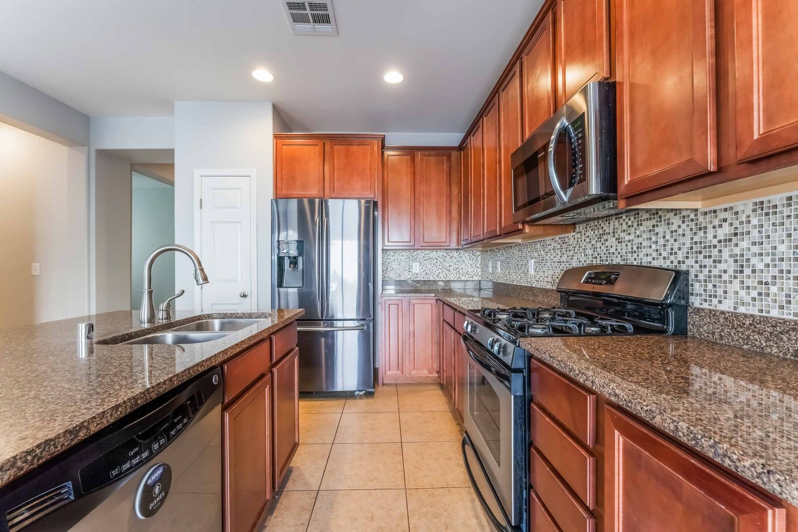 Spacious Home with Modern Comforts! This stunning home offers a thoughtfully organized open floor plan centered around a beautifully designed kitchen with granite countertops, stainless steel appliances, custom cabinetry, and a functional island with seating. The spacious living and dining areas flow seamlessly to a backyard featuring pavers and low-maintenance landscaping, creating an inviting setting for everyday living and entertaining. A versatile den on the main level provides flexible use, while upstairs a generous loft adds extra living space. The primary suite features a walk-in closet and a well-appointed bathroom with dual sinks, a garden tub, and a separate standing shower. All bedrooms are comfortably sized, with ceiling fans throughout for enhanced comfort, and the home is completed by a two-car garage and a water softener for added convenience. CHECK FOR APPLICATION STATUS: https://tinyurl.com/4nmtrrpv Allow one of our BCRG Rental Specialists to assist you in finding your next home for FREE! Black and Cherry Real Estate Group 702-795-4663