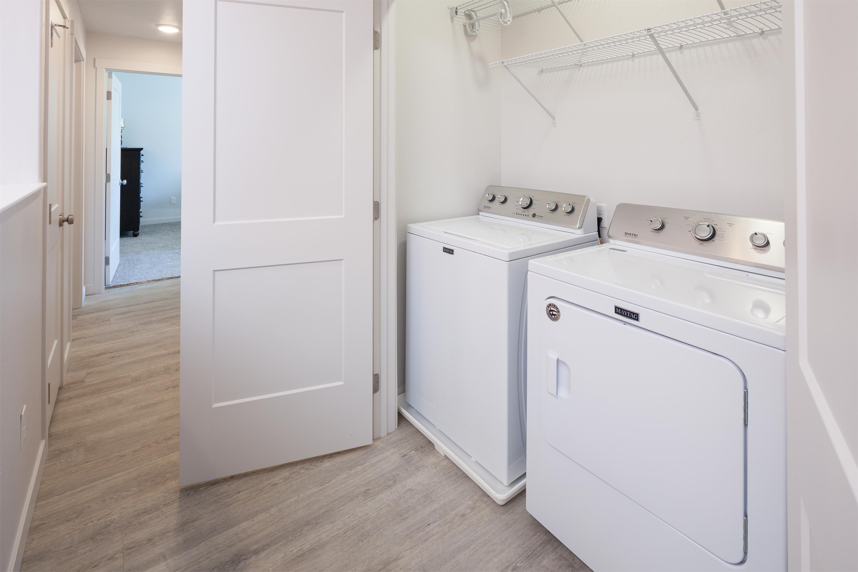 Spacious 2-bedroom, 2-bath unfurnished apartments available to rent in North Kalispell. Conveniently located near Glacier High School, shopping district, Kalispell Trail system, and Hwy 93 bypass. Located just 20-minutes from Whitefish, 40-minutes from West Glacier, and 20-minutes from Flathead Lake! These cozy apartments are close to everything the Flathead Valley has to offer. These are some of the most spacious and well-appointed apartments you'll find in Kalispell and the surrounding area. Apartment Features: - 1120 square feet of living space - Open Concept floorplan - Quality Carpet in bedrooms - Premium vinyl plank flooring in kitchen, dining, living room and bathrooms - Double Vanity in primary bedroom, en-suite bathroom - Stainless steel appliances - Top loading washer/dryer in unit - 9' Ceilings - High speed internet access - Heat Pump provides energy efficient heating/cooling - 1 covered carport included in rent - 1 In-Building Storage unit included in rent - Private patio or balcony Community Amenities: - Community center with lounge area, patio, business center & fitness center. - City Park in neighborhood 1-year lease required. First month rent + Deposit due at lease signing. Tenant pays all utilities and transfers electric service to their name. Not pet-friendly. Pictures are of a model unit staged for showing purposes. This property is professionally managed by Shannon McNamee of Crown Property Management PMP-RPM-LIC-53352. Equal Opportunity housing provider.