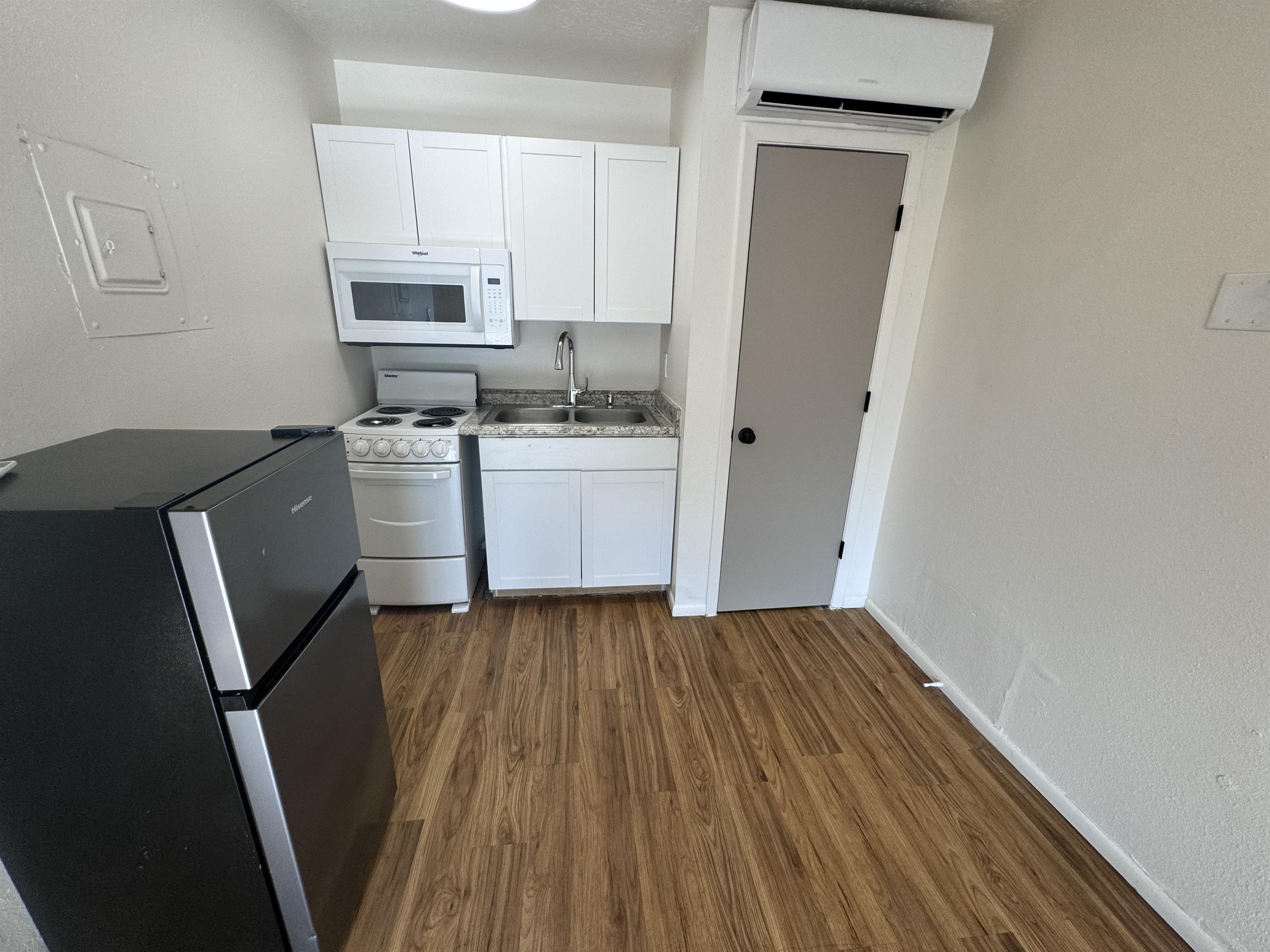 Welcome to your new home! - 6-month lease available This cozy studio apartment is perfectly situated just a short walk from the University of New Mexico, making it ideal for students, faculty, or anyone who loves being close to the vibrant UNM campus and surrounding area. Features: Spacious Studio Layout: Open floor plan with ample living space, perfect for relaxing or studying. Updated Kitchen: Equipped with modern appliances, including a stove, refrigerator, and microwave. Comfortable Living Area: Large windows provide plenty of natural light and a pleasant view. Stylish Bathroom: Recently renovated with contemporary fixtures and a sleek design. On site laundry facilities: Convenience of doing laundry steps from your home. Air Conditioning & Heating: Stay comfortable year-round with efficient climate control. Laminate wood floors: Elegant and easy to maintain.