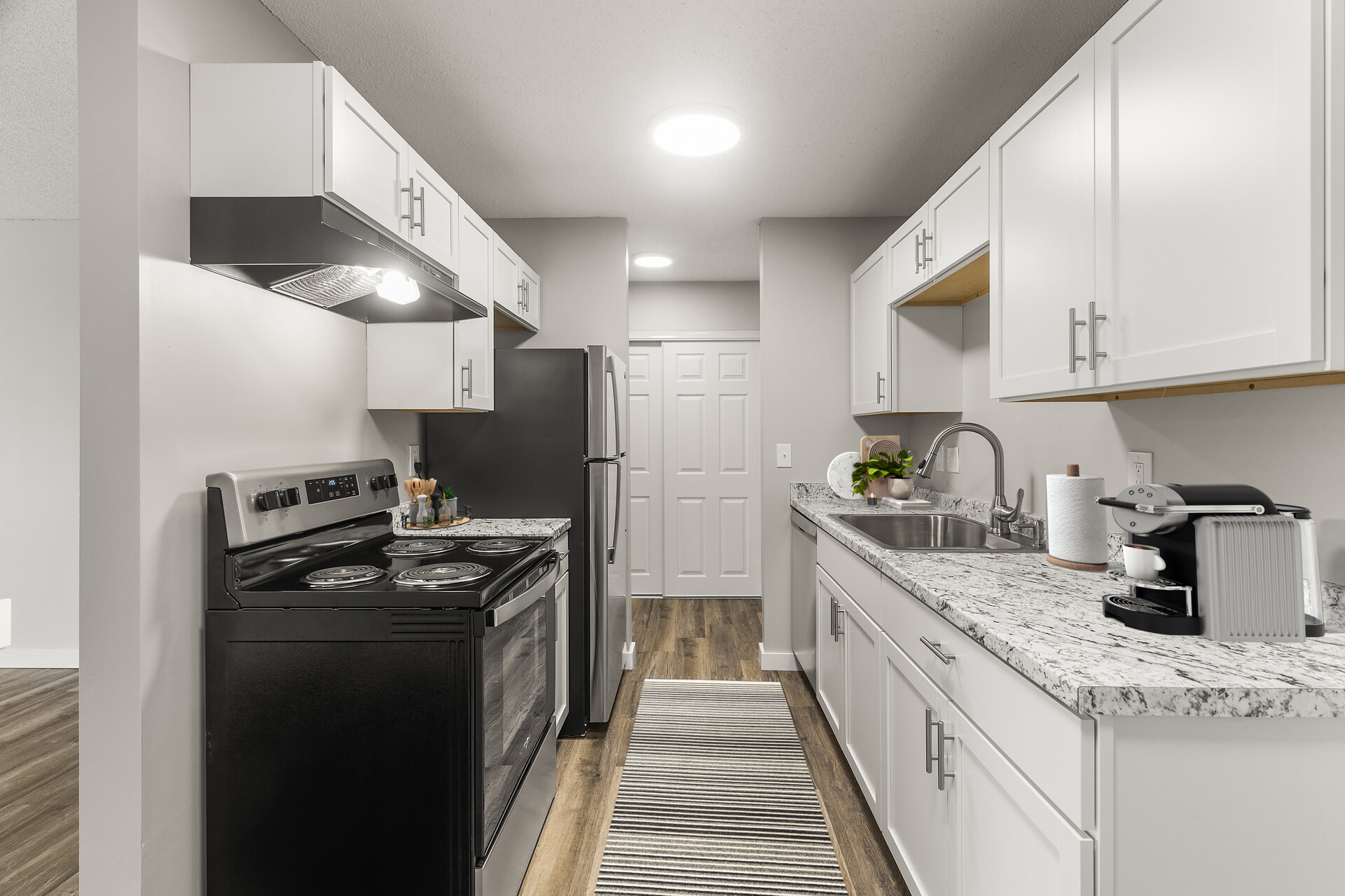 Discover modern living in this beautifully renovated 1-bedroom, 1-bathroom home, offering a perfect blend of style and convenience. The heart of the home is its updated kitchen, boasting pristine white shaker cabinets, elegant