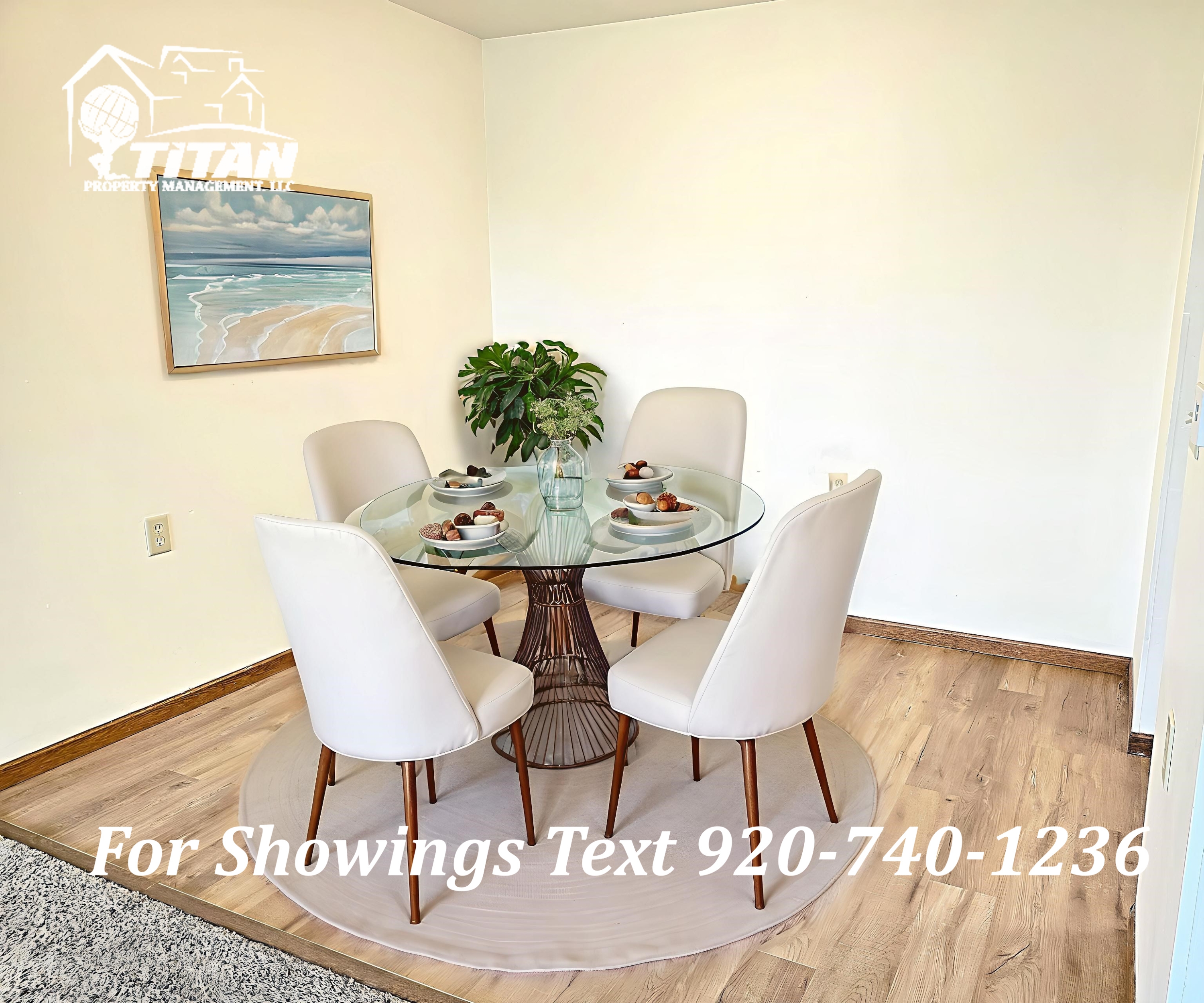 Live comfortably in this updated 2-bedroom, 1-bath upper apartment located in a secure building. The unit boasts fresh paint, stylish lighting fixtures, and new luxury vinyl plank flooring in the kitchen, dining, and bathroom. It includes an air conditioning unit and a full appliance package to make your life easier. Enjoy the convenience of an underground parking stall in the attached garage—perfect for harsh Wisconsin winters. Additional amenities include lower-level storage cages and coin-op laundry on each floor. Act fast and schedule your showing now before this desirable unit is leased! Text 920-740-1236 Please refence the address of 234 Towyn. Important Information: ***All parties over the age of 18 must submit to a background and credit check there is a $25 fee for the check*** At Titan Property Management, we strive to provide an experience that is cost-effective and convenient. That's why we offer a Resident Benefits Package (RBP) to address common headaches for our residents. Our program handles insurance, utility set up, credit building, and more at a rate of $32.95/month, added to every property as an optional program. More details upon application. If you do not choose the total package, renters insurance is still required. Total Monthly Payment (Rent + RBP)*: $982.50 *If you provide your own insurance policy, the RBP cost will be reduced by the amount of the insurance premium billed by Second Nature Insurance Services (NPN No. 20224621). **"Disclaimer: Some of the furniture & items depicted in the photos of this real estate listing were generated using an AI program. They are for illustrative purposes only. We encourage a personal visit to experience the space firsthand."**