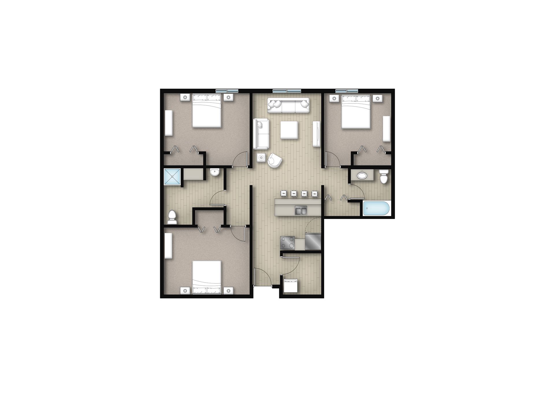 West - 3 Bed 2 Bath (a) 2026/2027 Rent: $710–$760 per bedroom/month (+ electric & water) Enjoy the perfect blend of comfort and convenience in this 3-bedroom, 2-bathroom apartment at U-Square West. With modern updates and a spacious layout, this floorplan is ideal for anyone who want privacy and functionality while living closest to MSU Mankato. Apartment highlights: In-apartment laundry Eat-in kitchen Open floor plan Updated kitchens As a U-Square West resident, you’ll also enjoy full access to all U-Square amenities, including: Fitness center Community room Indoor bike storage Study areas Coffee bar Secure package room