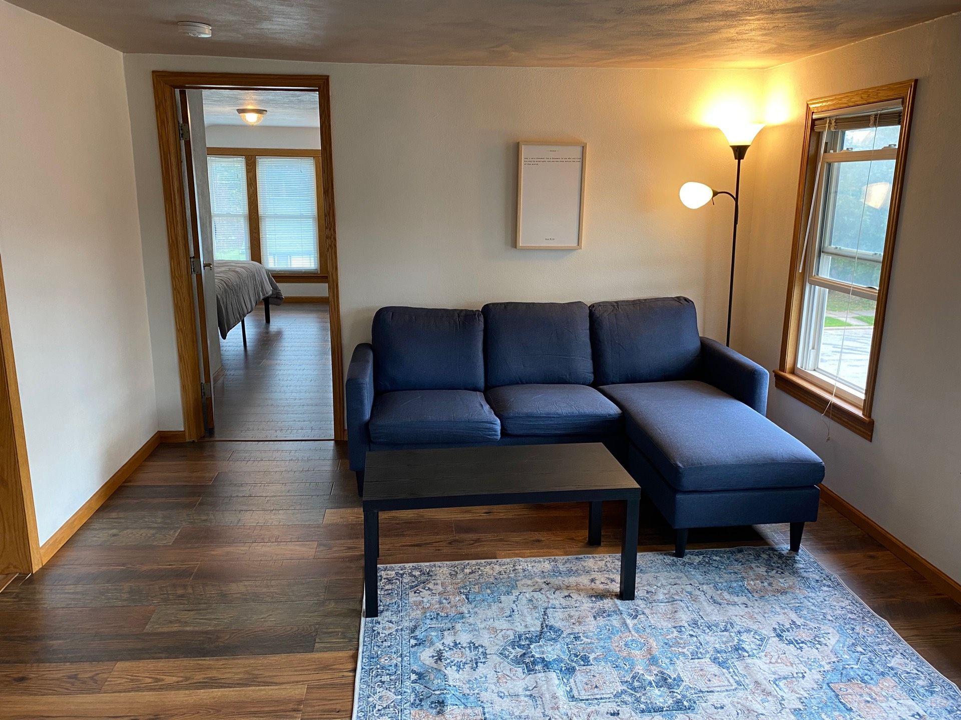 Discover the charm of this beautifully updated and fully furnished 2-bedroom, 1-bathroom house at 410 N Maple Ave in Marshfield. From the inviting front porch and mature landscaping to the thoughtfully designed interiors, this home offers comfort and convenience. Step inside to find rich dark wood laminate flooring and neutral walls, bathed in natural light from multiple large windows. The comfortable living room is ready for relaxation with its plush
