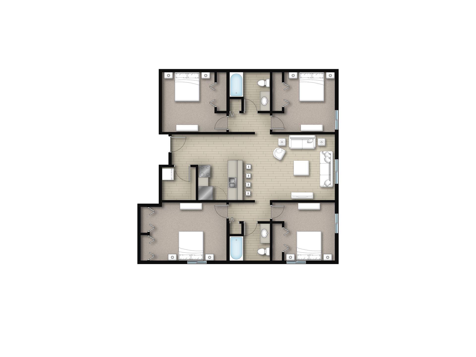 West - 4 Bed 2 Bath SE 2026/2027 Rent: $670–$690 per bedroom/month (+ electric & water) Designed for convenience and value, this 4-bedroom, 2-bathroom apartment at U-Square West is perfect for students who want spacious living while living closest to MSU, Mankato. With updated features and an open layout, it’s an affordable choice without sacrificing comfort. Apartment highlights: In-apartment laundry Eat-in kitchen Open floor plan Updated kitchens As a U-Square West resident, you’ll also enjoy full access to all U-Square amenities, including: Fitness center Community room Indoor bike storage Study areas Coffee bar Secure package room